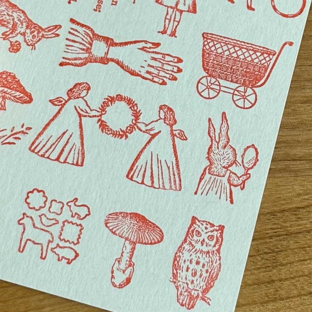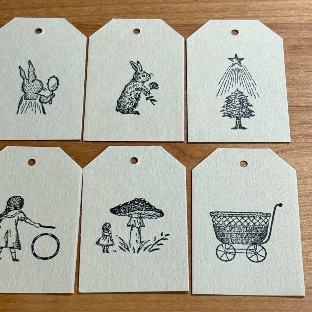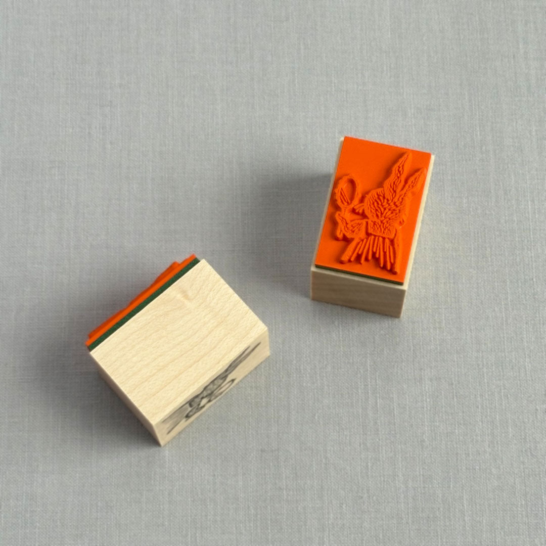 鏡を覗き込んでいるウサギのスタンプです。スリップを着たウサギが、小さな手鏡を見つめている後ろ姿を描きました。tales on the deskのスタンプは、線画のイラストの細かい部分まで再現できるように、原画に調整を重ねています。ペーパークラフトやスクラップブッキング、お手紙のアクセントにもおすすめです。単品での販売となります。